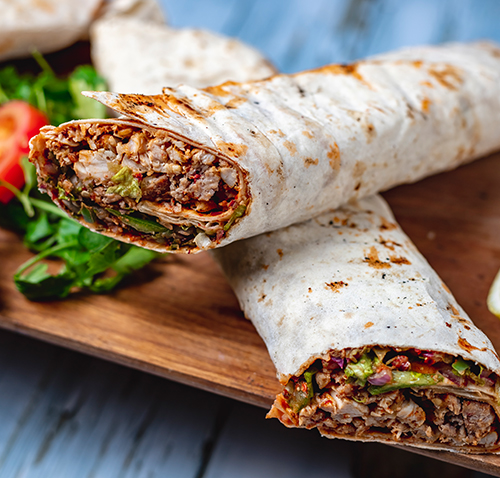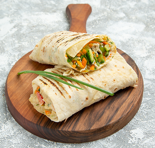 The filling can include meats, vegetables, cheese, sauces, and condiments.